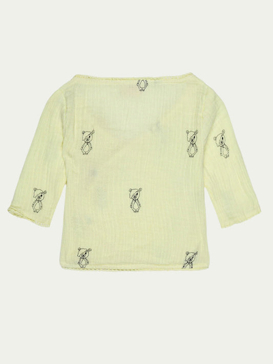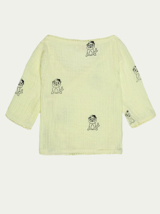 Organic Cotton Wrap Shirt – Butter Yellow with Print