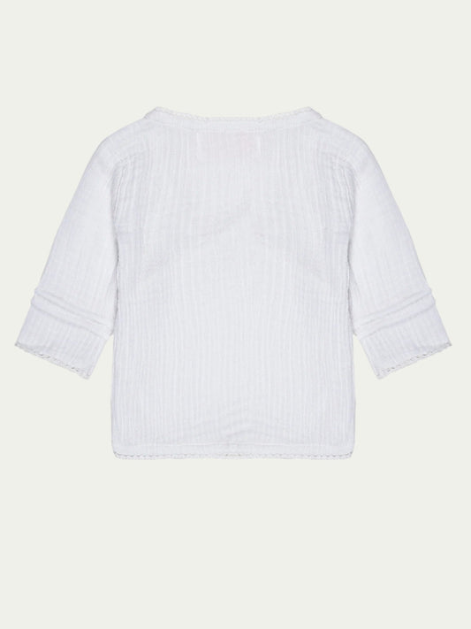 Organic Cotton Wrap Baby Shirt – Pristine White with Lace Trim