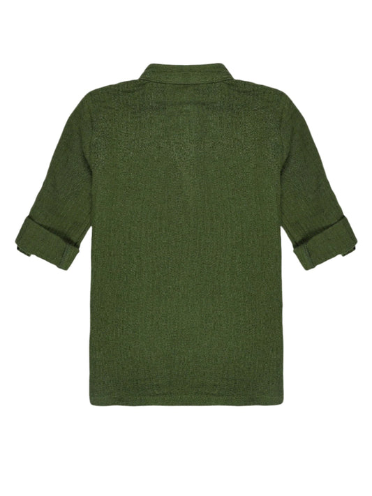 Organic Cotton Baby Shirt with Roll Up Sleeves – Forest Green