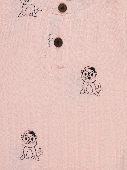 Organic Cotton Shirt – Pink with Seal Print