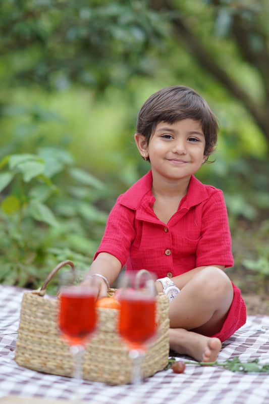Organic Cotton Collared Baby Shirt – Ruby Red