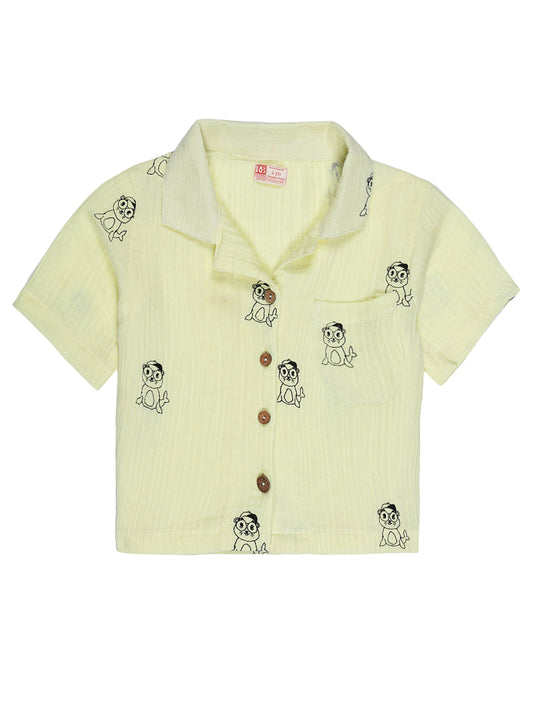 Yellow Animal Print Collar Co-ord Set – Organic Cotton Shirt & Shorts