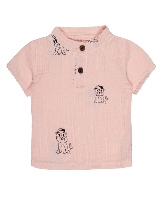 Pink Cute Seal Print Co-ord Set – Organic Cotton Shirt & Shorts