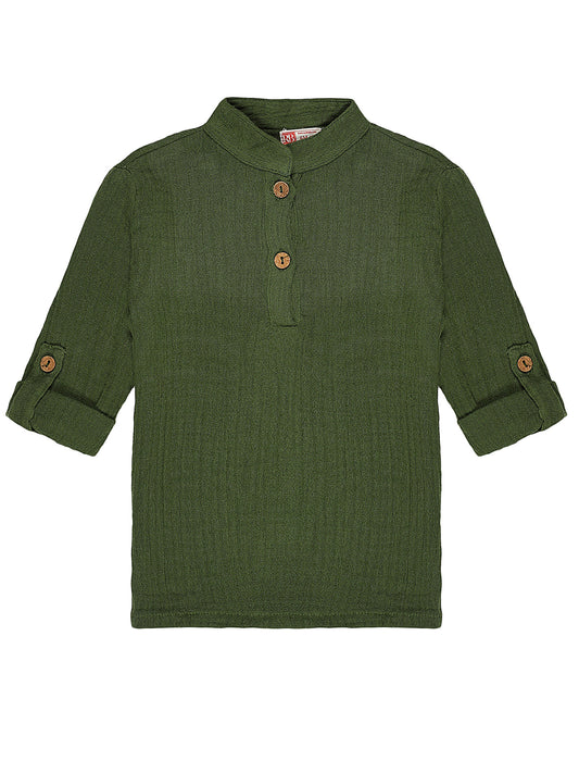 Beige Roll-Up Sleeves Shirt and Forest Green Shorts Set