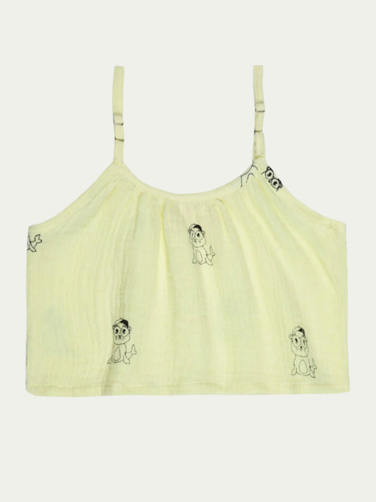 Organic Cotton Spaghetti Top And Bottom Set – Butter Yellow with Seal Print